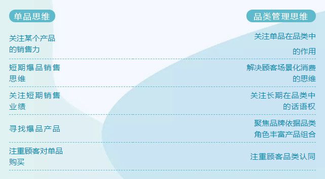 未来随着行业发展和市场的成熟,要在竞争中获得有利的位置,思维不能停留在单品的层面,而是从品类的角度去思考单品,提升对于整个品类管理的能力。既然是品类管理,我们就不是管理一两个单品, 而是管理具有相同品类特性而类别不同的一系列产品。通过品类组合来适应市场的变化。品类管理最基础是要对品类进行角色的划分,主要角色包括: