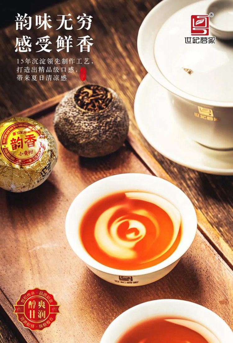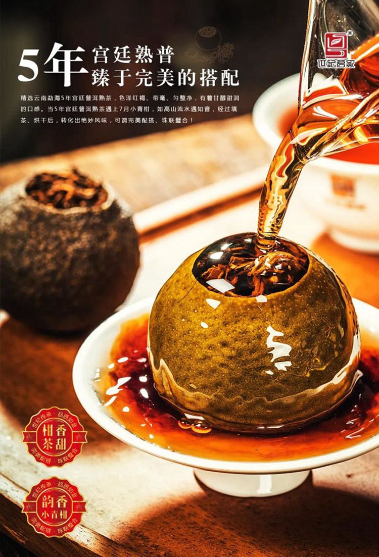 韵香小青柑,世纪茗家小青柑的精品代表,特选用7月生理周期的新会柑。