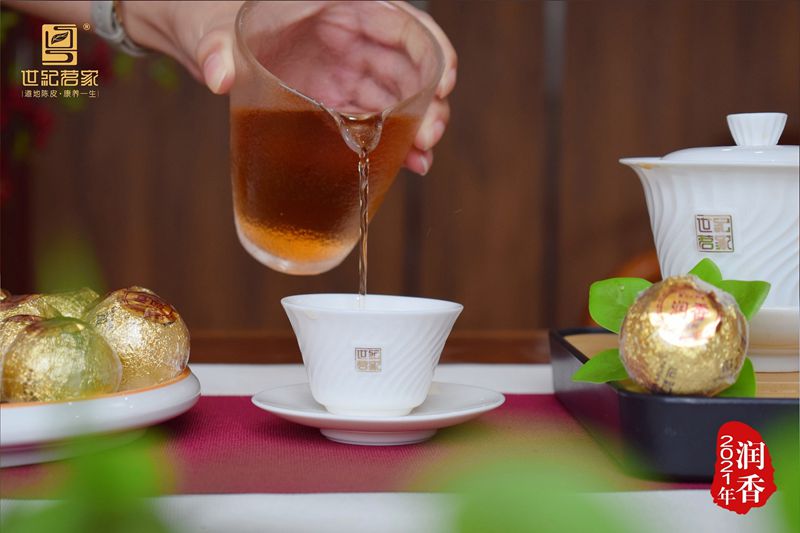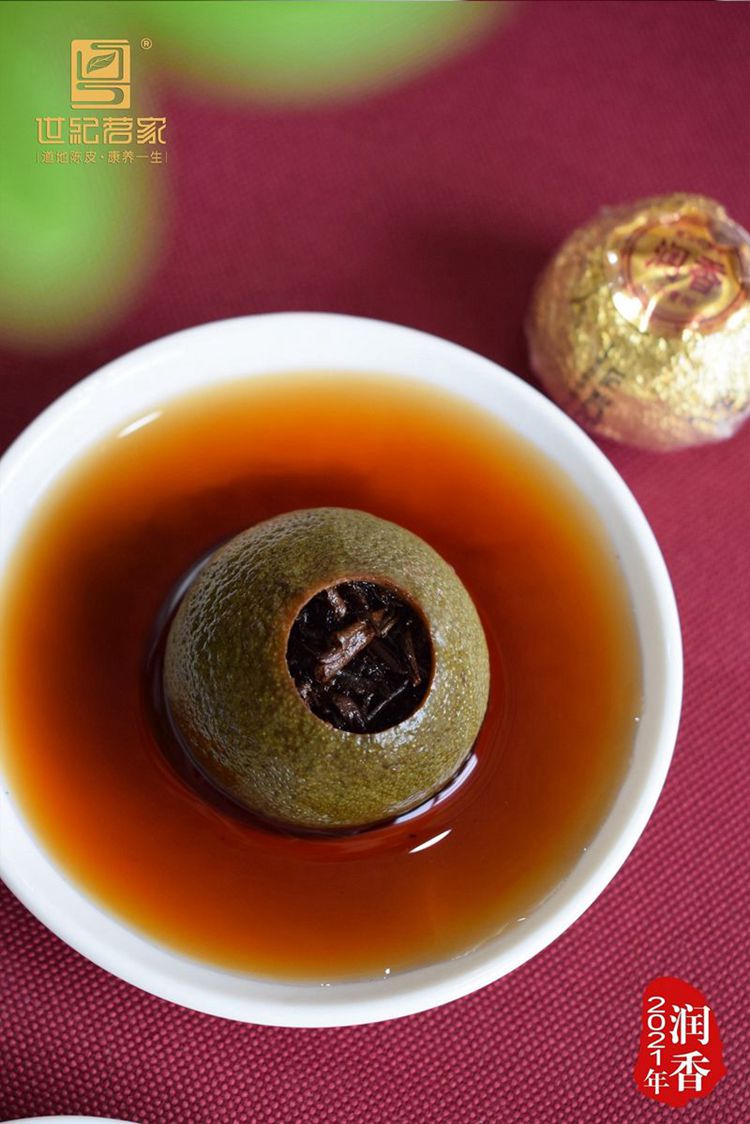 润香小青柑是世纪茗家小青柑的精品代表,特选用9月生理周期的新会柑。