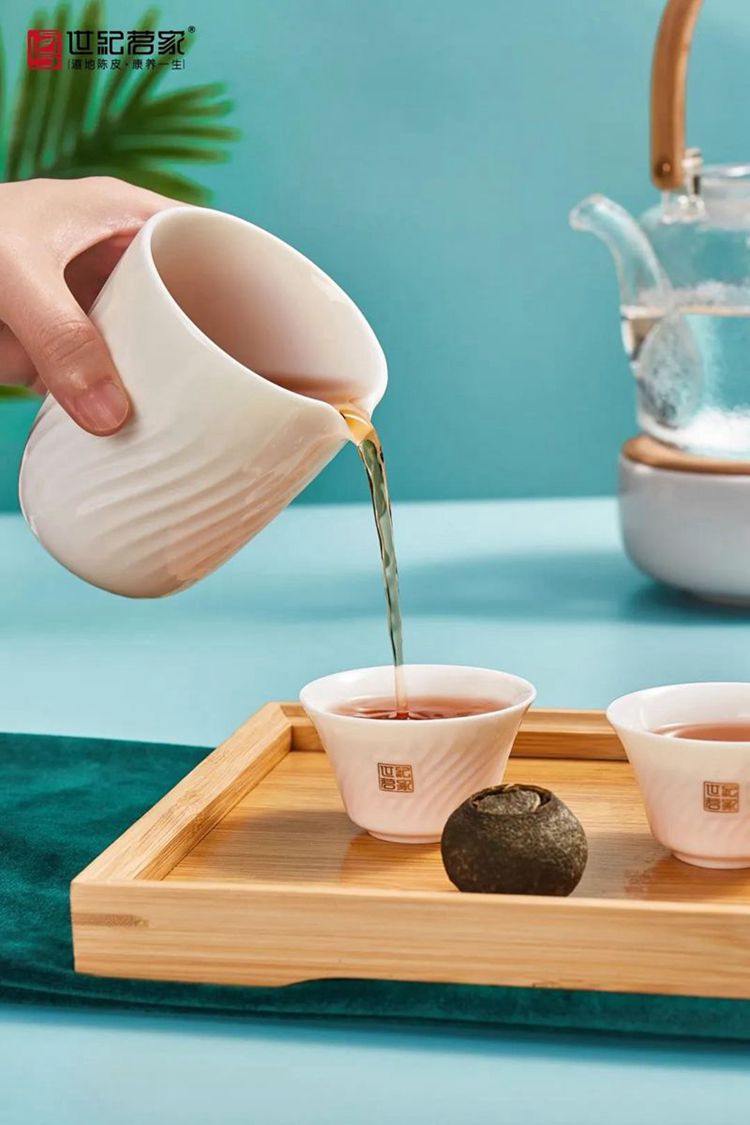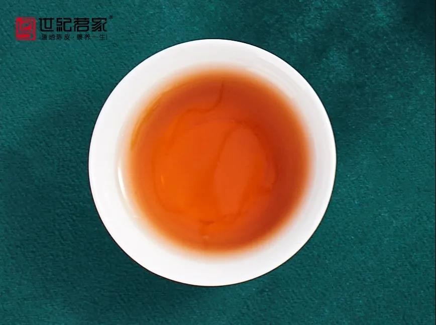 色泽通透源于优质的柑皮与茶底,加上世纪茗家“33道净化标准”加持,尊贵品质溢于形表。