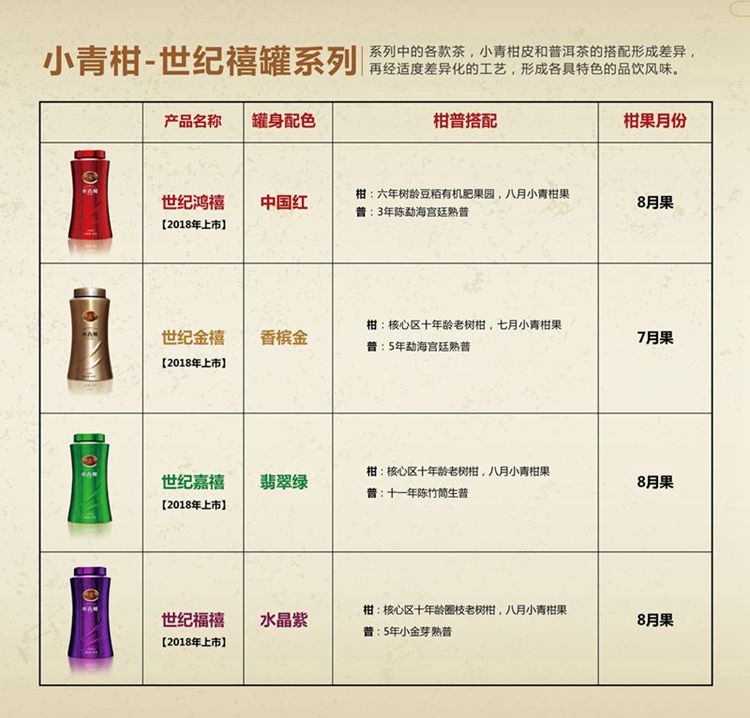 小青柑禧罐系列各款单品对比表