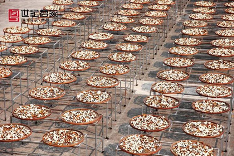 4、实施定容定量、小容量存储,保障高品质和品质均衡。传统模式往往条件所限,采用大容器、大堆积,导致内外不同位置的柑皮陈化不均衡,同时容易出现返潮、虫害等问题;世纪茗家陈化仓采用小容量容器进行标准定量贮存,辅以翻晒等措施,确保内外均衡陈化,实现最佳陈化效果,特别是保障大批量陈化的质量。