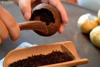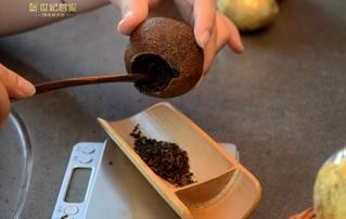约125ml的盖碗,配6克茶,2克皮;特别注意的是,能否泡出美味的红柑茶,首先取决于茶与皮的配合比例,因为柑皮与普洱两种香气、味道融合在一起,其协调性是评价这道茶的关键点之一;要做到柑与茶浑然一体,融合成一种全新的味道,柑中有茶,茶中有柑!(原则:冲泡红柑茶,普洱茶与陈皮的投茶量可按3:1的比例)