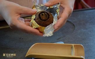剥开锡箔纸,展示茶品,果型十分圆整,一阵浓郁的皮香、茶香扑鼻而来!