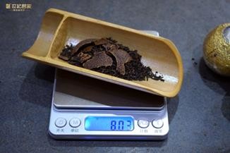 6克茶,2克皮,合计约8克;配约125ml的盖碗注水量。