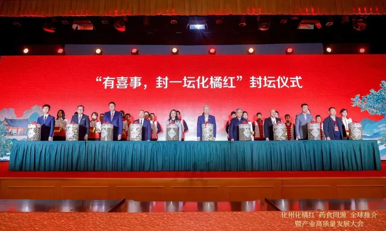 “江南有女儿红,岭南有化橘红。”大会还现场演示了“有喜事,封一坛化橘红”封坛仪式。化州被誉为“中国化橘红之乡”,封坛活动源远流长,寓意着愈陈愈良,代代相传,承载着阖家平安健康的美好愿景。化州将民间的化橘红封坛行为,提升为树立化橘红品牌的一种举措,有效地加深了人们对化橘红的认知,也使得这一传统文化焕发了时代新活力,增强了化橘红的品牌效应,也提高了其市场价值和知名度。